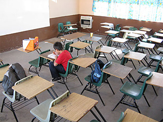 | Out of a class of 40, this fourth-grade student was the only one who came to school on Dec. 16. at Luis Urias Elementary in Ciudad Juarez, Mexico. (Chris Hawley/USA Today)