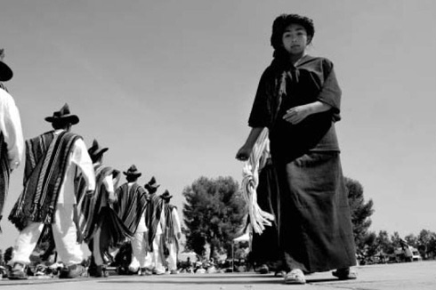 Dancers from the many ethnic groups of Oaxaca, now living as migrants in the United States, perform at the annual festival of Oaxacan indigenous culture, the Guelaguetza, in Fresno. This is one of at least five places in California where Oaxacans organize the festival every year. |