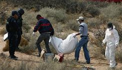 | | Mexican federal police carry a corpse found in an unmarked grave in Juarez, Mexico, on Saturday. At least five bodies were found. (Jesus Alcazar/Getty Images) |  | Mexico City — Taxi driver Francisco Arroyo rues the day he voted for Mexican President Felipe Calderón.