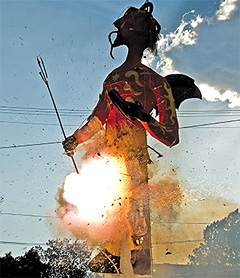 | | A gigantic devil-like Judas figure filled with fireworks is set alight on Saturday in Mexico City's Iztapalapa borough as Holy Week traditions and festivities continued in the capital. (Cuartoscuro/Rodolfo Angulo) |  | If you want to know who sits atop Mexico´s current villains list, just wait for Holy Saturday. That´s when the nation´s most unpopular politicians, crooks, business tycoons and even popular culture figures are burned in effigy as Judas figures.
