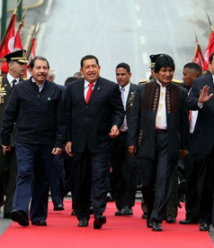 | | From left to right, Nicaraguan President Daniel Ortega, Venezualan President Hugo Chavez and Bolivian President Evo Morales at the Bolivian Alternative for the Americas Summit in February. (Getty Images) |  | There are high expectations for the upcoming Summit of the Americas, happening April 17-19 in Trinidad and Tobago. It will be President Obama's first opportunity to dialogue with Latin American and Caribbean presidents. Many hold out hope for a new direction for United States policies towards our neighbors in the hemisphere.