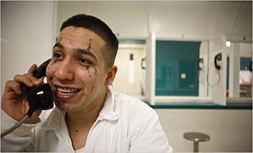 As he talks, his countenance shifts back and forth, from the deadpan of a street tough with emotionless eyes to the oddly innocent laugh and smile of a 19-year-old boy for whom everything is a lark. His voice is soft and melodic, even when his words are menacing.