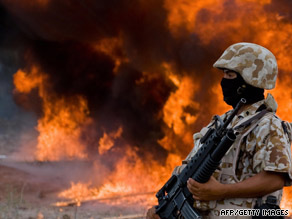 | | Mexican marine stands guard as 7,000 kilograms of marijuana are incinerated in Mexico's Sonora state. |  | Washington - Despite massive security efforts north and south of the border, the drug-fueled killing spree in Mexico is continuing and is on course to surpass last year's record toll, federal officials told Congress Thursday.