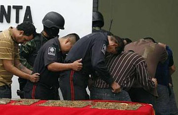 | | Soldiers lead away detainees after they were presented to the media at the military zone on the outskirts of Monterrey October 26, 2009. The military detained 15 members of the Zetas, the armed wing of the Gulf cartel, including two policemen, during an operation late Sunday, according to local media. (Reuters/Tomas Bravo) |  | Matamoros, Mexico — This border city near the mouth of the Rio Grande is eerily quiet most days — because its streets are largely the lair of the Zeta gunmen, the most feared and savage gangsters in Mexico.