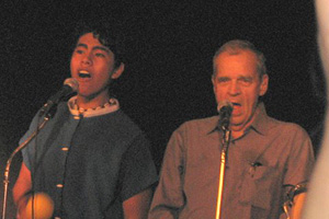 The audience did not want to let them go when the show was at an end. So, to loud yells of "otra" and "more," Los Bambinos re-took the stage and began, of course, "Elvira." They motioned for Husband to join them on stage and this time, gave him his very own microphone!