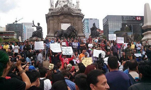 Protesters carrying signs that read "No to Censorship" and "Freedom of Expression" walked along Reforma avenue toward the Senate building in a demonstration organized on social networks. While most of the march was peaceful, the Mexico City Human Rights Commission said police pushed and grappled with some protesters near a television network office and manhandled the governmental commission's own inspectors.