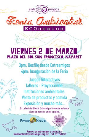 San Pancho, Nayarit - The 2018 Entreamigos Environmental Fair, "Econexion," is set to take place on Friday, March 2 from 9 am to 7 pm in San Francisco, Nayarit. This entertaining and educational event seeks to raise environmental awareness through games, dynamics and workshops. In addition, it seeks to show successful models of sustainable practices that help meet the challenges of today.